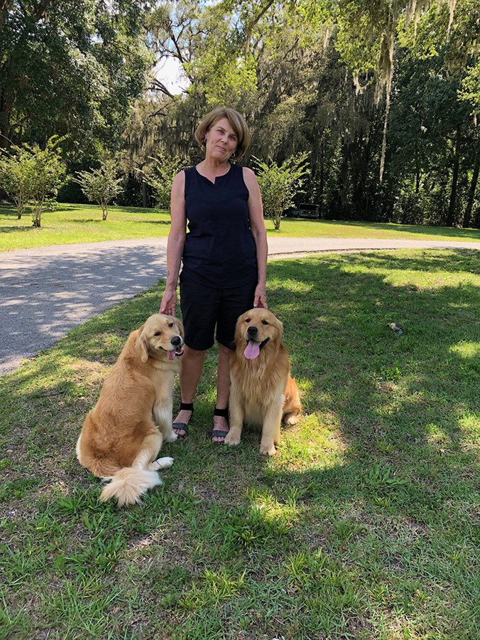 We are located on a farm a few miles north of Ocala, Florida where my husband and I have lived for over 30 years. We are both veterinarians and graduates of Colorado State University in Fort Collins, Colorado, where we are from. Kevin works with horses only and I have spent the majority of my career as an Anatomic Pathologist working for the University of Florida after completing a pathology residency. I am specialized in diagnosis of diseases of the skin but have worked on so many different types of animals and tissues that it would be impossible to recount. I also served as the Associate Dean of the UF College of Veterinary Medicine for a number of years. I have enjoyed my time at UF and my wonderful colleagues but am now looking forward to more personal time to spend with my family, friends and dogs. We have three wonderful children and two Golden Retrievers and of course, Jack the Cat. Our farm is a haven for a retriever with acres to run and train. Our dogs are with us constantly and are part of the family.